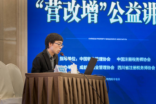 4月17日下午,在中國物業(yè)管理協(xié)會(huì )、中國注冊稅務(wù)師協(xié)會(huì )指導下,成都市物業(yè)管理協(xié)會(huì )聯(lián)合四川省注冊稅務(wù)師協(xié)會(huì ),在成都天府國際金融中心成功舉辦了成都市物業(yè)管理行業(yè)“營(yíng)改增”公益講座。四川省注冊稅務(wù)師協(xié)會(huì )會(huì )長(cháng)張煒、副會(huì )長(cháng)楊原波,成都市物業(yè)管理協(xié)會(huì )常務(wù)副會(huì )長(cháng)、秘書(shū)長(cháng)巫慶敏出席活動(dòng)。講座邀請四川省國家稅務(wù)局貨物和勞務(wù)稅處付鴻雪副處長(cháng)、劉偉老師為全市400余位物業(yè)管理企業(yè)負責人及財務(wù)負責人,就企業(yè)如何實(shí)現“營(yíng)改增”政策的平穩過(guò)渡進(jìn)行了權威的講解答疑。講座由成都市物業(yè)管理協(xié)會(huì )副秘書(shū)長(cháng)茍強主持。