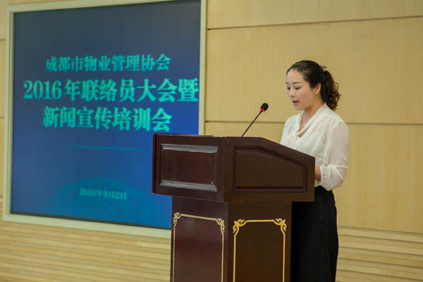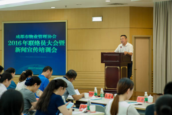 9月2日下午,成都市物業(yè)管理協(xié)會(huì )在房產(chǎn)分中心三樓多功能會(huì )議室召開(kāi)2016年聯(lián)絡(luò )員大會(huì )暨新聞宣傳培訓會(huì ),對30位獲得2016年“優(yōu)秀聯(lián)絡(luò )員”稱(chēng)號的同志進(jìn)行了表彰,并開(kāi)展了媒體公關(guān)、新聞寫(xiě)作和攝影培訓。成都市城鄉房產(chǎn)管理局物業(yè)管理處副處長(cháng)姜魯東、新聞宣傳辦公室主任胡建華應邀出席會(huì )議并講話(huà)。協(xié)會(huì )會(huì )長(cháng)聞濤、常務(wù)副會(huì )長(cháng)兼秘書(shū)長(cháng)巫慶敏出席會(huì )議,200余家會(huì )員單位的聯(lián)絡(luò )員參加了會(huì )議。會(huì )議由協(xié)會(huì )副秘書(shū)長(cháng)茍強主持。