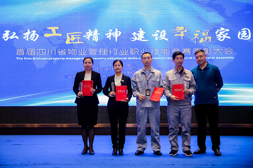 成都市物業(yè)管理協(xié)會(huì )會(huì )長(cháng)聞濤為“優(yōu)秀獎”獲獎選手頒獎